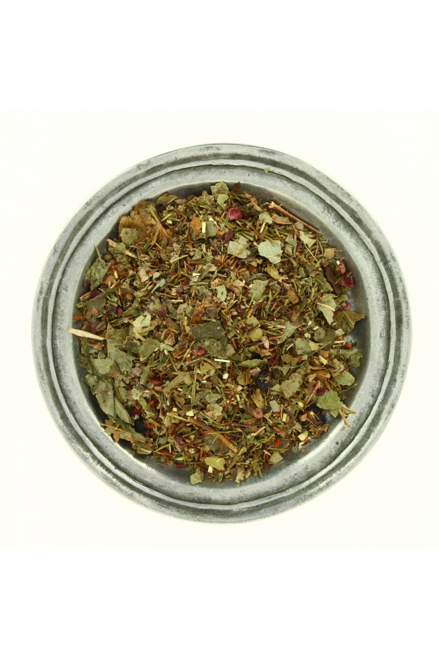 Un superbe mélange de plantes : Feuilles de vigne rouge, rooibos vert, feuilles de cassis, fleurs de bruyère, feuilles hamamélis, morceaux de framboise séchés et arôme naturel myrtille framboise.